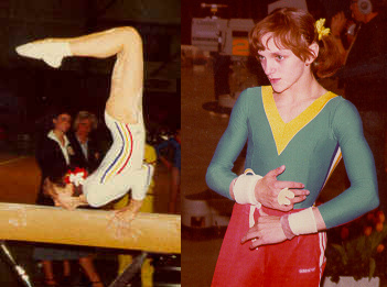 Gertrud Emilia Eberle is an ethnic Hungarian from Arad. The Rumanians felt "Gertrud" was not ethnic Rumanian-sounding, so she used Emilia in competition. Emilia was also coached by the Karoly's and competed along side Nadia Comaneci under the Rumanian flag. She was expected to take Gold in 1984 after her double-silver performance in 1980, but surgery cut her career short. She defected to Hungary in 1989 and eventually came to the United States where she coaches at Pozsar's Gym in California. See Gymnastic Greats Click for larger images