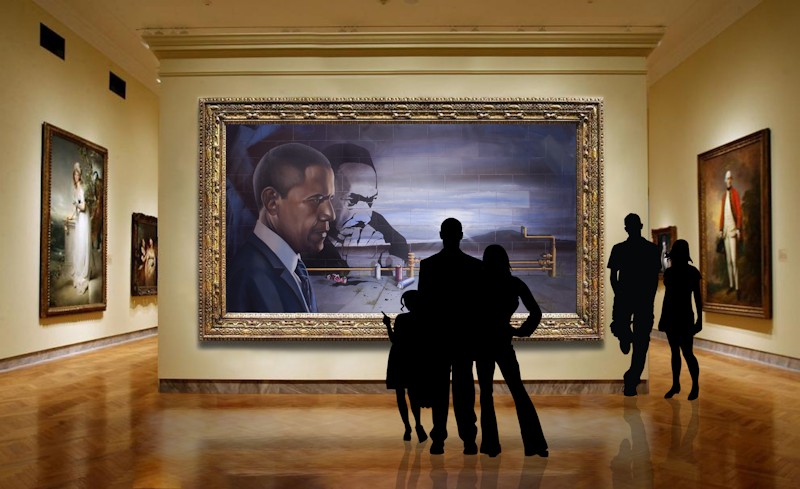 | The Hungarian-born American artist Gabor Szabo immigrated to the United States just around the end of the cold war. Gabor’s childhood passion for drawing has evolved into the thought-provoking subject matter of his work that occasionally reflects his perception of today’s society. By taking on the role of a rebel, he often questions the sense and purpose behind the social structure and media hype. Every so often he illustrates the mutation of our primeval spiritualism into the modern world’s complex and superficially composed architecture. His paintings are communicating through a lucid dreamlike experience by marrying symbolism with Gabor’s version of Dalian surrealism. The Hungarian-born American artist Gabor Szabo immigrated to the United States just around the end of the cold war. Gabor’s childhood passion for drawing has evolved into the thought-provoking subject matter of his work that occasionally reflects his perception of today’s society. By taking on the role of a rebel, he often questions the sense and purpose behind the social structure and media hype. Every so often he illustrates the mutation of our primeval spiritualism into the modern world’s complex and superficially composed architecture. His paintings are communicating through a lucid dreamlike experience by marrying symbolism with Gabor’s version of Dalian surrealism. The newest addition to his American Patriotic Series is titled Tribute to Civil Rights. Featuring President Obama and Martin Luther King Jr., this 6’x11’ painting symbolizes the transformation of THE DREAM into REALITY by utilizing both two and three dimensional spaces. The traditional painting technique along with modern composition is carefully joined to touch the spirit of many generations. The artist said, "It is great to see that we live in a society where one person’s dream can become a nation’s reality. Although there is still room for improvement, there is a need to pay tribute to those who have helped us the get this far and the movement that has paved the way for not only minority groups but also for immigrants who come to this nation to pursue their dreams like the way I did when I was a young adult." |   Gallery Hours: Tuesday - Saturday, 12 - 6PM Reception: Friday, January 10, 6-9 PM To see more of Gabor’s versatile collection of work, visit his online gallery at http://www.technicalcad.com/gallery Please contact the artist at cadplanet@yahoo.com or (727) 804-7780 www.waverlystreetgallery.com For further information, contact the show curator, John Sonnier johnsonnier@comcast.net, (240) 671-7722 RELATED ARTICLES We are all volunteer and need your support! Join online! |