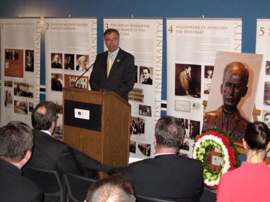 Congressman Meeks, ranking member of the House Europe Subcommittee, who spearheaded the Congressional effort to grant Wallenberg the Congressional Gold Medal, the highest honor the United States Congress can give to a civilian, announced that the Wallenberg Centennial Bill (H.R.3001) had the necesary number of co-sponsors to pass the House. The bill was passed by the House of Representatives soon after the ceremony without a single "no" vote. Rep. Meeks also reminded those present that many Hungarians who helped save lives during the Holocaust remain nameless but should be remembered.
