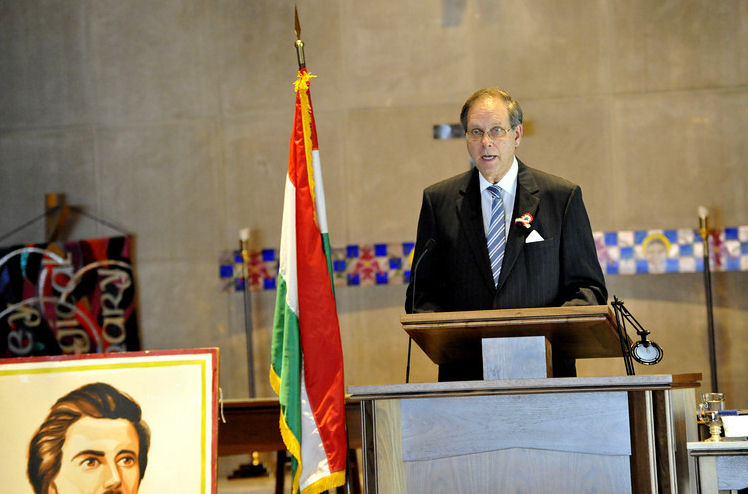 Each year, speakers focus on the significance of the 1848 revolution and how its ideals and goals relate to today's Hungary. Zoltán Bagdy, AHF Co-President and Chair of its Cultural Affairs Committee, welcomed guests and served as Master of Ceremonies. Bryan Dawson, AHF Executive Chairman, sang the national anthems of the United States and Hungary and would later deliver the Keynote Address (Ünnepi Beszéd).