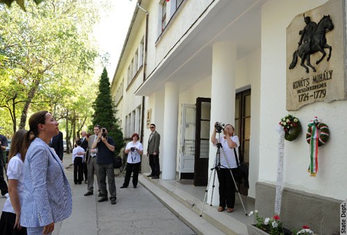 Ambassador Kounalakis attended the memorial ceremony honoring Col. Michael (Mihály) Kováts, a native of Karcag, who left Hungary to fight in the American Revolutionary War. He wrote a letter to Benjamin Franklin offering his services and then recruited, trained and led the first U.S.cavalry unit into battle. He died on May 11, 1779, when he led a cavalry charge against the British troops in South Carolina toliberate the city of Charleston. In her remarks, she reflected on her personal motivation for attending the anniversary commemoration: