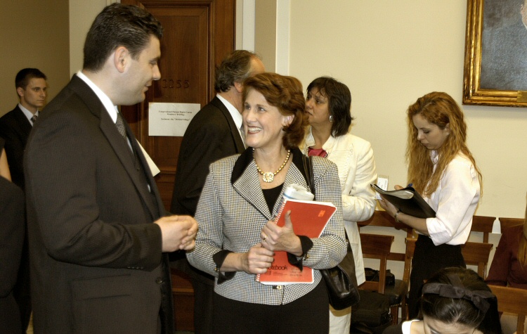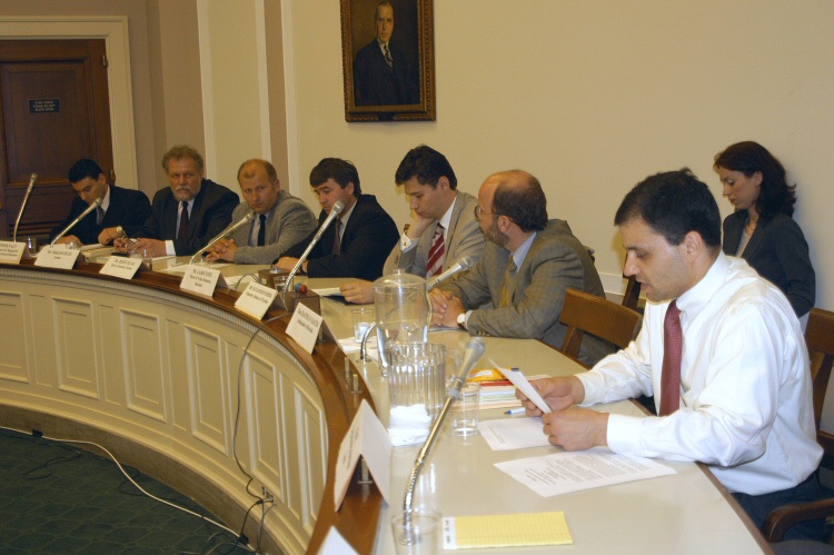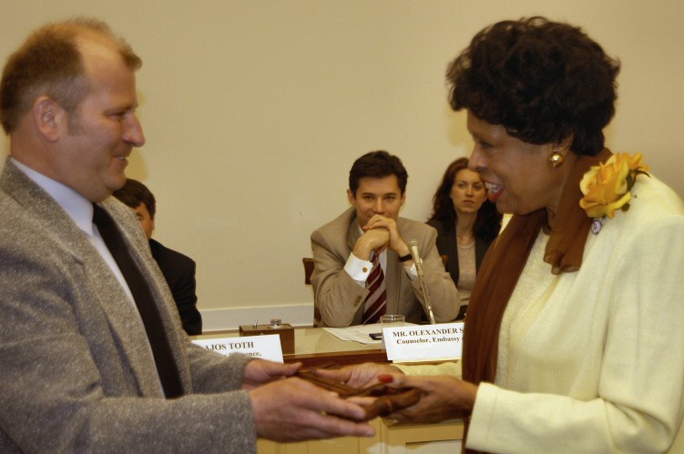 The mayors of both sides of Szelmenc, the village divided in two, testified along with the Ambassadors of Slovakia and the Ukraine, and the President of the Center for Hungarian American Congressional Relations before the Congressional Human Rights Caucus regarding the desperate situation. The Ambassador of Slovakia committed to finding a solution to this "nonsensical situation." Ukranian Counselor agrees. The briefing was held Wednesday, April 21, 2004, 2:00 p.m. - 3:30 p.m. in the 2255 Rayburn House Office Building and was attended by Congresswoman Diane Watson (D-CA) and staffers from Congressman Lantos' (D-CA Human Rights Caucus Co-Chair) and Congressman Wolf's (R-VA, Human Rights Caucus Co-Chair) offices. The well attended event included the wife of Congressman Istook (R-OK) along with American Hungarian Federation 1st Vice President Frank Koszorus, Vice President Bryan Dawson, Director Atilla Kocsis, Zoltan Bagdy, Frank Kapitan, and Gabor Olah.