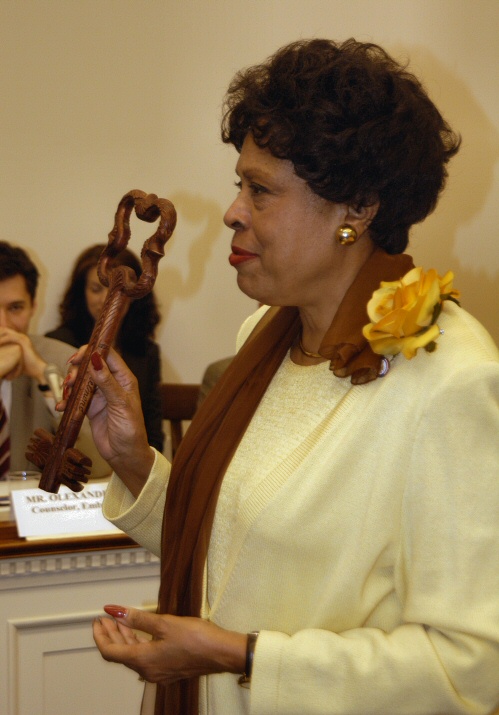 Hand-engraved on the beautiful item were the symbols of peace, prosperity, and freedom of travel. Congresswoman Watson told him she looks forward to using the key to cross a newly opened border. - Bryan Dawson, AHF Information Office
